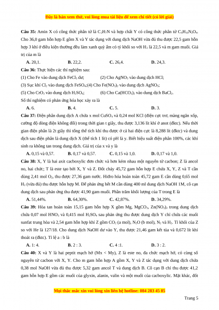 Câu 40: X và Y là hai peptit mạch hở (Mx < My), Z là este no, đa chức mạch hở, có cùng số
