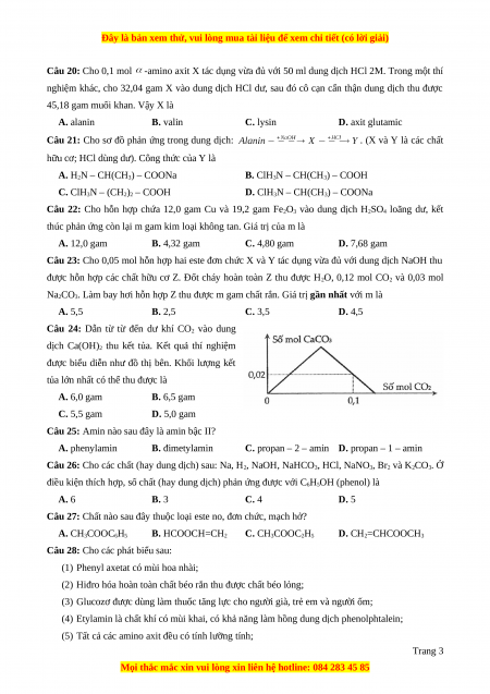Câu 20: Cho 0,1 mol -amino axit X tác dụng vừa đủ với 50 ml dung dịch HCl 2M. Trong một thí