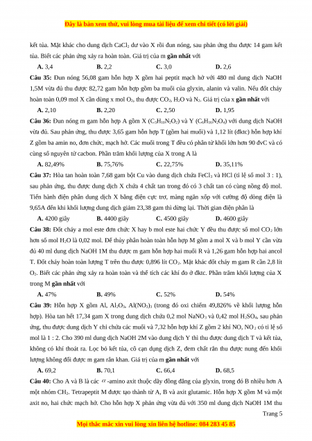 Câu 40: Cho A và B là các -amino axit thuộc dãy đồng đẳng của glyxin, trong đó B nhiều hơn A