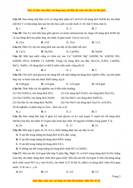 Câu 25: Đun nóng hỗn hợp X gồm 0,2 mol glyxin và 0,1 mol peptit Y mạch hở với dung dịch