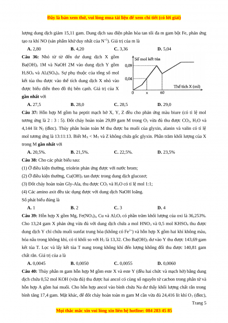 Câu 36: Nhỏ từ từ đến dư dung dịch X gồm