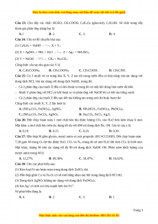 Câu 26: Đốt cháy hoàn toàn 1 mol chất béo thu được lượng CO2 vào H2O hơn kém nhau 6 mol.