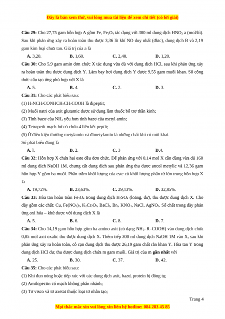 Câu 34: Cho 14,19 gam hỗn hợp gồm ba amino axit (có dạng NH