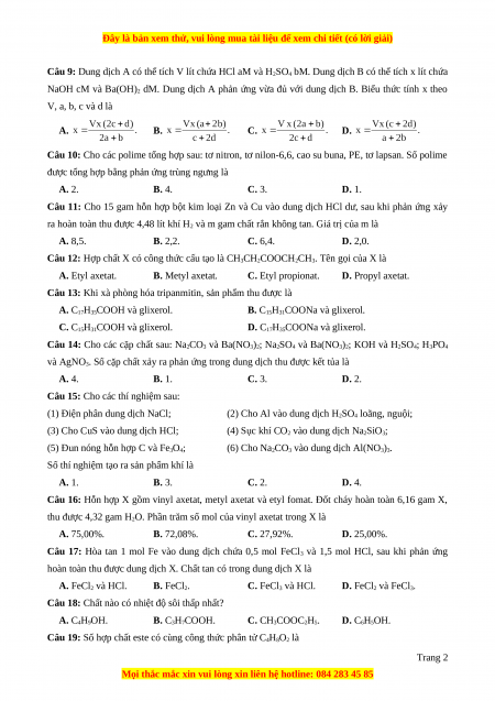 Câu 19: Số hợp chất este có cùng công thức phân tử C4H8O2 là Trang 2