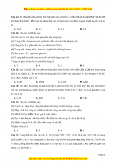 Câu 9: Chất nào sau đây khi tham gia phản ứng thủy phân tạo sản phẩm chứa fructozơ? A. Saccarozơ B. Amilopectin C. Tinh bột. D. Xenlulozơ Trang 1
