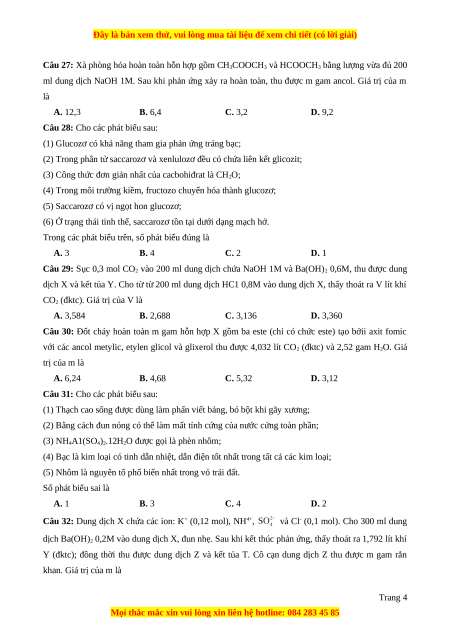 Câu 27: Xà phòng hóa hoàn toàn hỗn hợp gồm CH3COOCH3 và HCOOCH3 bằng lượng vừa đủ 200