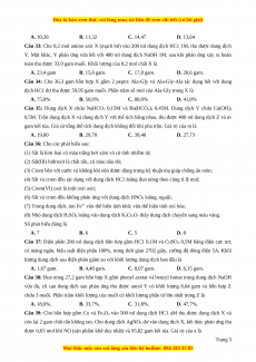 Câu 10: Cho 5,62 gam hỗn hợp gồm Na và Al vào nước dư, kết thúc phản ứng thu được V lít khí