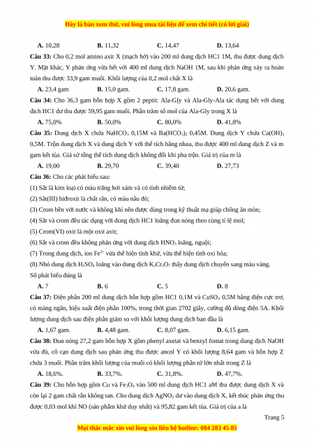 Câu 7: Cho 96 gam hỗn hợp gồm valin và glyxin (tỉ lệ mol tương ứng là 1:1) tác dụng hoàn toàn