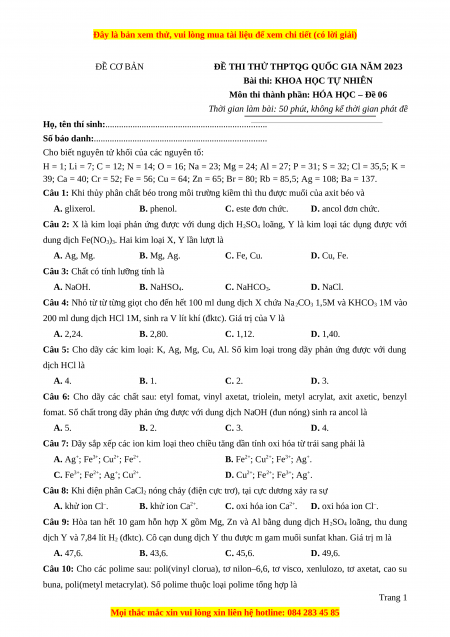 Môn thi thành phần: HÓA HỌC – Đề 06