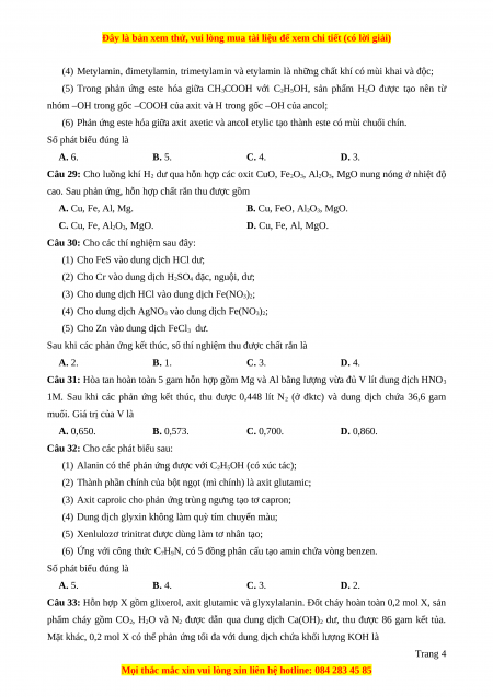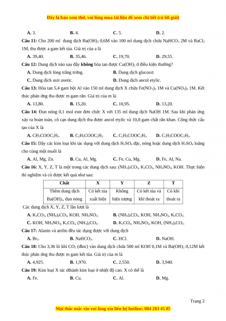 Câu 17: Alanin và anilin đều tác dụng được với dung dịch A. Br2. B. NaHCO3. C. HCl. D. NaOH.