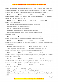 Câu 1: Khi thủy phân chất béo trong môi trường kiềm thì thu được muối của axit béo và A. glixerol. B. phenol. C. este đơn chức. D. ancol đơn chức.