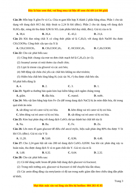 Câu 19: Kim loại X tác dthành kim loại ở nhiệt độ cao. X có thể là A. Fe. B. Cu. C. Al. D. Mg. Trang 2