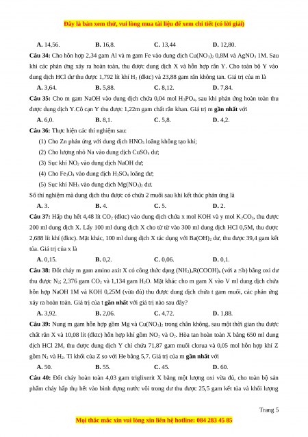 Câu 38: Đốt cháy m gam amino axit X có công thức dạng (NH