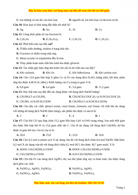 Câu 16: Cho dãy các chất: phenyl axetat, vinyl fomat, tristearin, etyl fomat. Số chất khi tác dụng