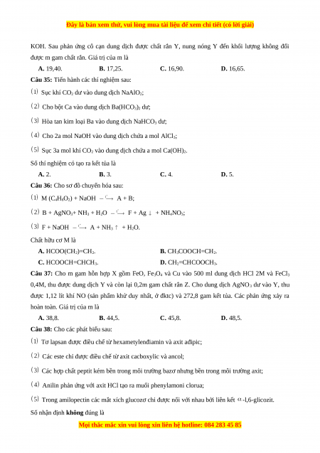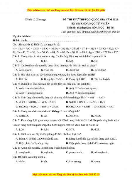 Bài thi: KHOA HỌC TỰ NHIÊN