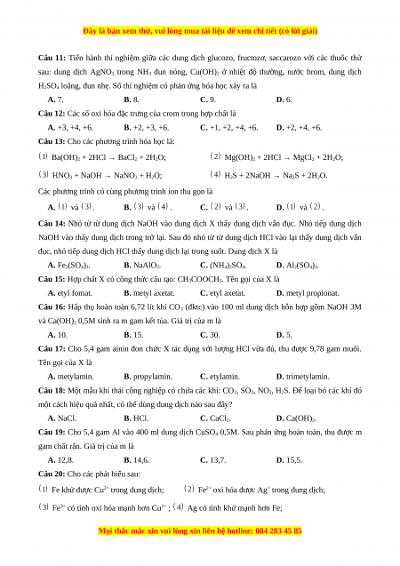 Câu 12: Các số oxi hóa đặc trưng của crom trong hợp chất là A. +3, +4, +6. B. +2, +3, +6. C. +1, +2, +4, +6. D. +2, +4, +6.