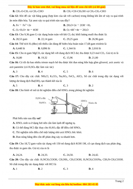 Câu 19: Cho 18,72 gam valin tác dụng với 150 ml dung dịch KOH 1M, cô cạn dung dịch sau phản ứng,