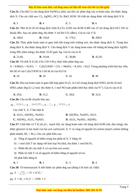 Câu 28: Từ monosacarit X tiến hành các phản ứng sau (đúng tỉ lệ mol các chất): (a) (b) Trang 3