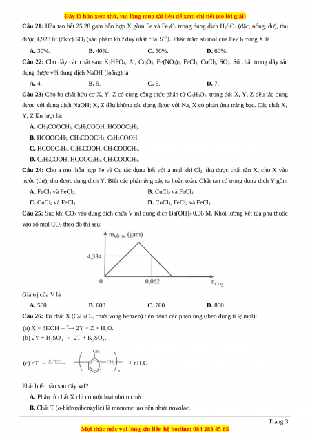 Câu 23: Cho ba chất hữu cơ X, Y, Z có cùng công thức phân tử C3H6O2, trong đó: X, Y, Z đều tác dụng