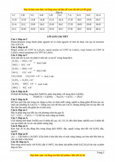 Câu 5: Để làm sạch lớp cặn trong các dụng cụ đun và chứa nước nóng, người ta dùng A. nước vôi trong B. giấm C. ancol etylic.