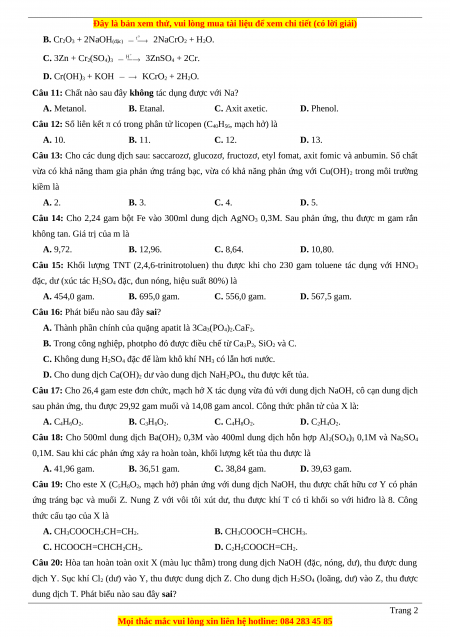 Câu 20: Hòa tan hoàn toàn oxit X (màu lục thẫm) trong dung dịch NaOH (đặc, nóng, dư), thu được dung