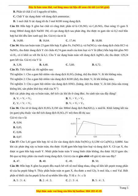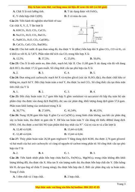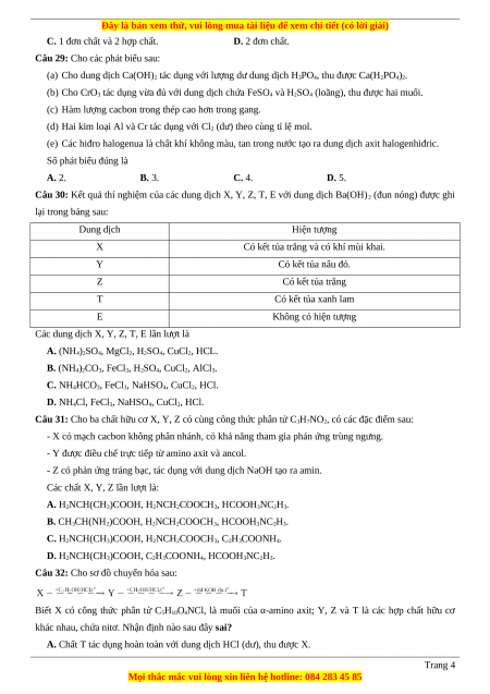 Câu 31: Cho ba chất hữu cơ X, Y, Z có cùng công thức phân tử C3H7NO2, có các đặc điểm sau: