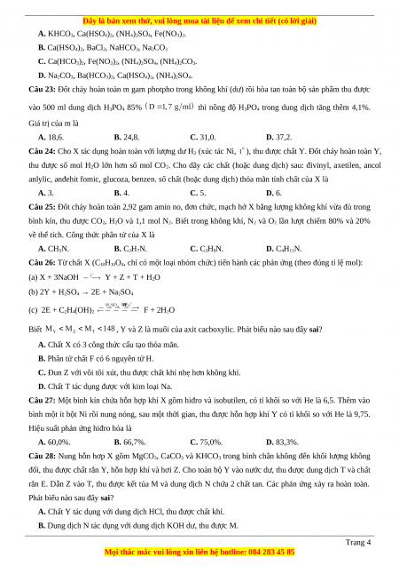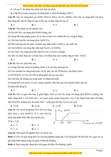 Câu 29: Cho các dung dịch sau: KOH, KHCO