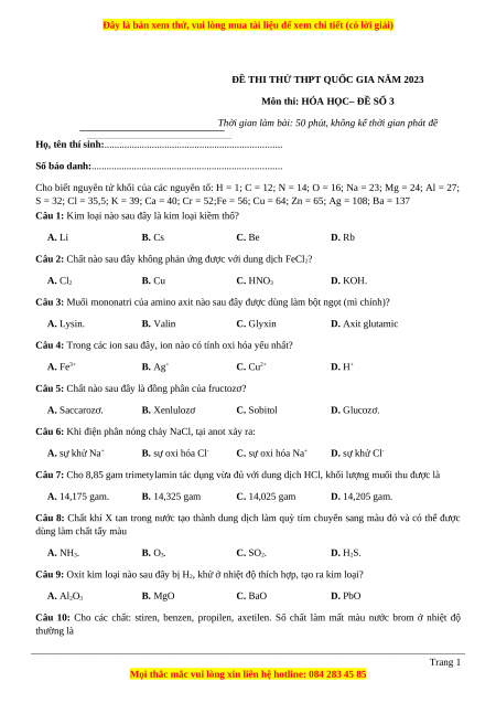Môn thi: HÓA HỌC– ĐỀ SỐ 3