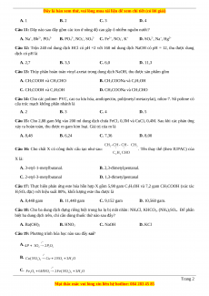 Câu 10: Cho các chất: stiren, benzen, propilen, axetilen. Số chất làm mất màu nước brom ở nhiệt độ thường là Trang 1