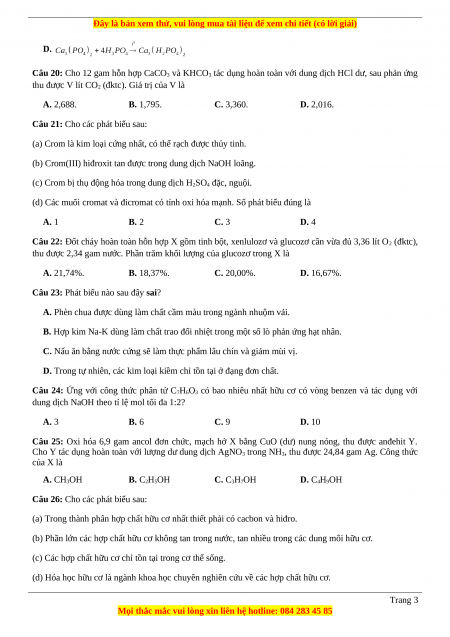 Câu 20: Cho 12 gam hỗn hợp CaCO3 và KHCO3 tác dụng hoàn toàn với dung dịch HCl dư, sau phản ứng