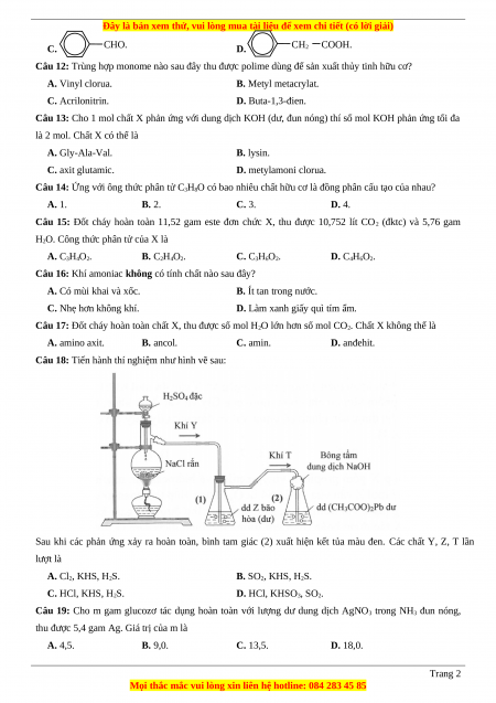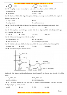 Câu 17: Đốt cháy hoàn toàn chất X, thu được số mol H2O lớn hơn số mol CO2. Chất X không thể là A. amino axit. B. ancol. C. amin. D. anđehit.