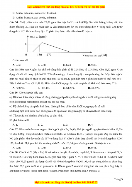 Câu 38: Cho X và Y (M