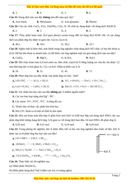 Câu 15: Dung dịch nào sau đây không làm đổi màu quỳ tím? A. Axit fomic. B. Metylamin. C. Axit glutamic. D. Phenol.