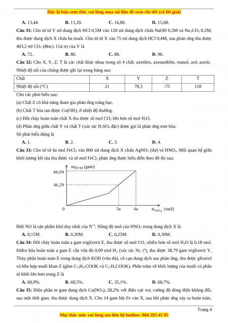 Câu 33: Cho từ từ 4a mol FeCl2 vào 800 ml dung dịch X chứa AgNO3 (dư) và HNO3. Mối quan hệ giữa