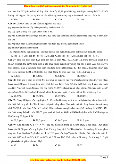 Môn thi: HÓA HỌC– ĐỀ SỐ 5
