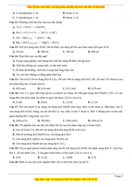 Câu 16: Cho 17,1 gam hỗn hợp glyxin và alanin tác dụng với 100 gam dung dịch NaOH 7,2%. Cô cạn