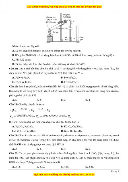 Câu 21: Cho a mol hỗn hợp gồm hai chất X và Y tác dụng hết với dung dịch HNO3 đặc, nóng (dư), thu