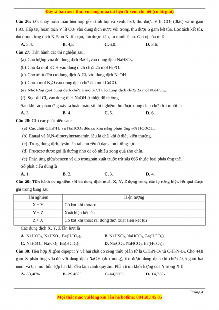Câu 26: Đốt cháy hoàn toàn hỗn hợp gồm tinh bột và xenlulozơ, thu được V lít CO