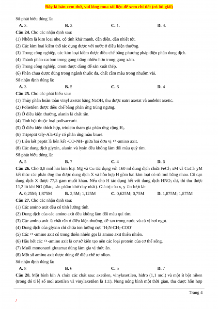 Câu 24. Cho các nhận định sau: