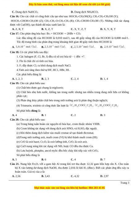 được với Cu(OH)2 tạo thành dd màu xanh lam là: A. Z, R, T B. X, Z, T C. X, Y, Z, T D. X, Y, R, T