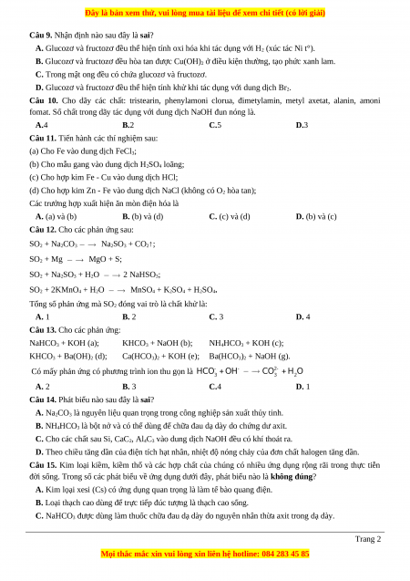 Câu 13. Cho các phản ứng: NaHCO3 + KOH (a); KHCO3 + NaOH (b); NH4HCO3 + KOH (c); KHCO3 + Ba(OH)2 (d); Ca(HCO3)2 + KOH (e); Ba(HCO3)2 + NaOH (g).