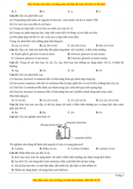 Câu 21. Dãy các chất nào dưới đây đều phản ứng được với Cu(OH)2 ở điều kiện thường