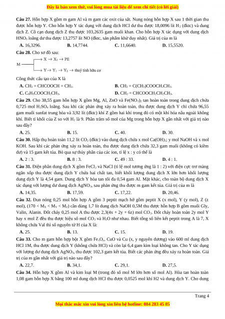 Câu 27. Hỗn hợp X gồm m gam Al và m gam các oxit của sắt. Nung nóng hỗn hợp X sau 1 thời gian thu
