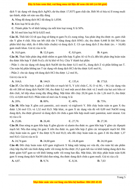 dịch HCl, thu được dung dịch Z chứa (m + 14,6) gam muối. Giá trị của m là A. 36,7. B. 49,9. C. 32,0. D. 35,3.