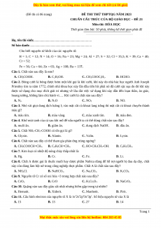 CHUẨN CẤU TRÚC CỦA BỘ GIÁO DỤC – ĐỀ 23 Môn thi: HÓA HỌC