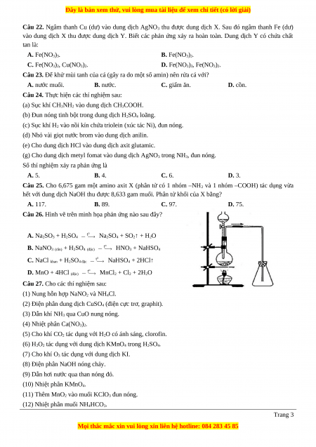 (3) Dẫn khí NH3 qua CuO nung nóng. (4) Nhiệt phân Ca(NO3)2.