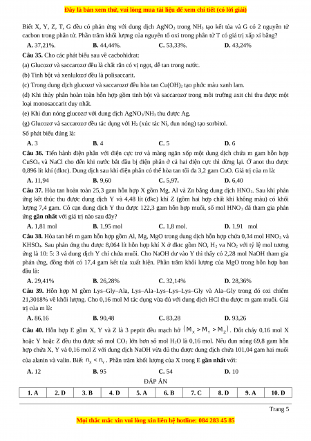 axetat), glyxylvalin (Gly-Val), etilenglicol, triolein. Số chất tác dụng với dung dịch NaOH đun nóng là: A. 5 B. 7 C. 4 D. 6
