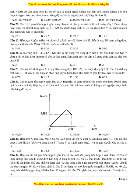 Câu 26. Cho 16,6 gam hỗn hợp X gồm metyl fomat và phenyl axetat (tỉ lệ mol tương ứng 1:2) tác dụng