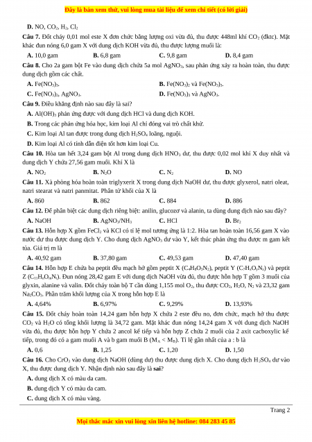 Câu 12. Để phân biệt các dung dịch riêng biệt: anilin, glucozơ và alanin, ta dùng dung dịch nào sau đây? A. NaOH B. AgNO3/NH3 C. HCl D. Br2