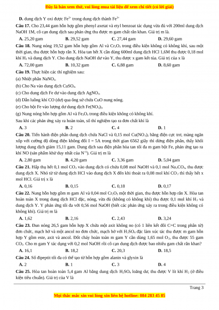 Câu 18. Nung nóng 19,52 gam hỗn hợp gồm Al và Cr2O3 trong điều kiện không có không khí, sau một